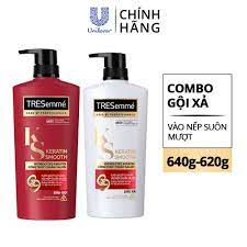 Bộ dầu gội và xả TRESemmé Keratin Smooth giúp tóc mềm mượt và vào nếp như được chăm sóc tại salon.