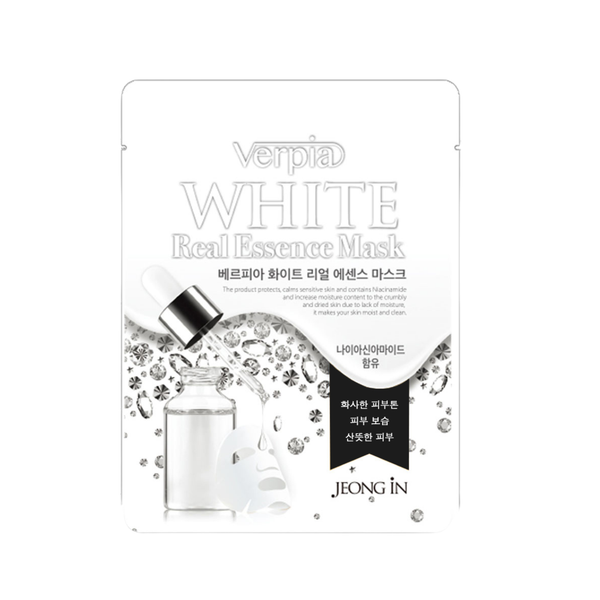 Mặt Nạ Dưỡng Trắng Da Jeong In Verpia Essence (20ml) là sản phẩm chăm sóc da từ Hàn Quốc, chứa Niacinamide (Vitamin B3) giúp cải thiện độ sáng và giảm thâm sạm cho da. Sản phẩm cung cấp độ ẩm, làm sáng các vùng da bị thâm sạm, nếp nhăn và lỗ chân lông to, mang lại làn da mềm mại và đều màu. Phù hợp cho mọi loại da, đặc biệt là da xỉn màu cần dưỡng trắng.