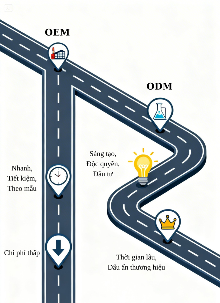 Phân biệt hai hình thức gia công phổ biến: OEM (sản xuất theo mẫu có sẵn) và ODM (phát triển sản phẩm độc quyền).