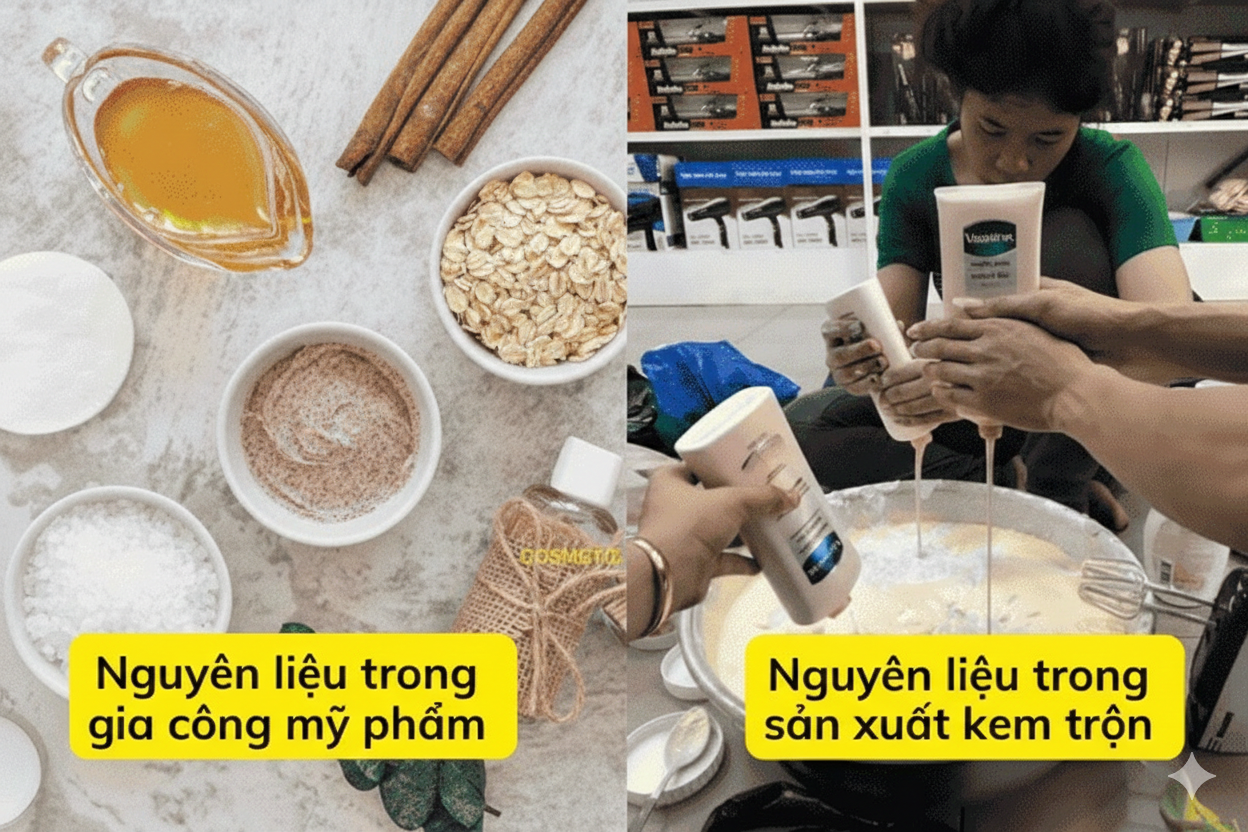 Đừng nhầm lẫn mỹ phẩm gia công với kem trộn – hai khái niệm hoàn toàn khác biệt.