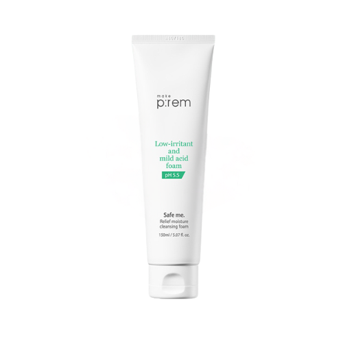 Sữa rửa mặt Make P:rem Safe Me Relief Moisture Cleansing Foam với độ pH 5.5, chứa các thành phần tự nhiên như chiết xuất mâm xôi, dầu dừa và tinh dầu cây xô thơm, giúp làm sạch da nhẹ nhàng, cấp ẩm, giảm kích ứng và duy trì độ ẩm tự nhiên, mang lại làn da mềm mại và khỏe mạnh.